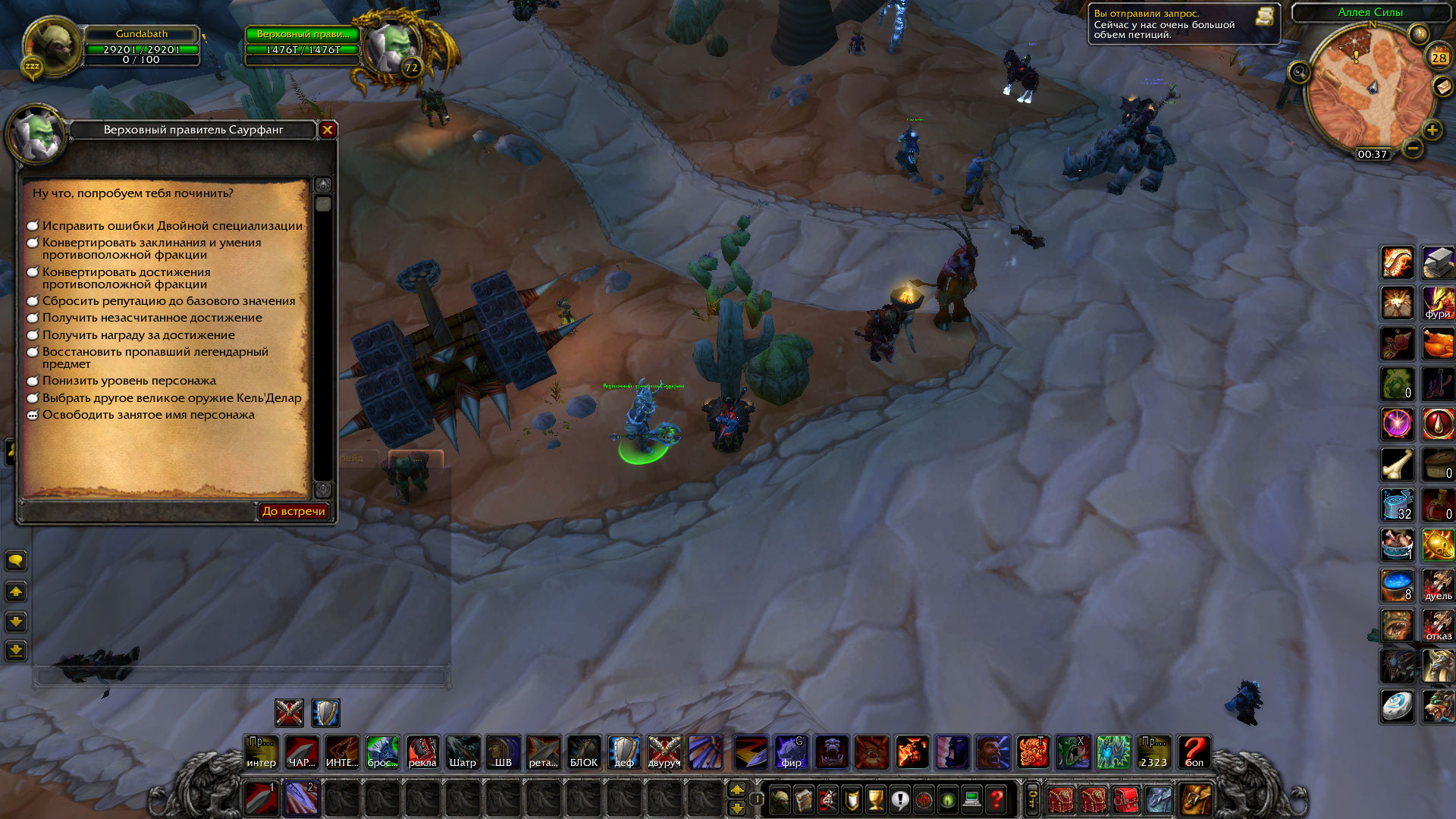 6. Пробовал решить через NPC "Саурфанга" в Оргримаре. Но у него в меню нету данной функции.