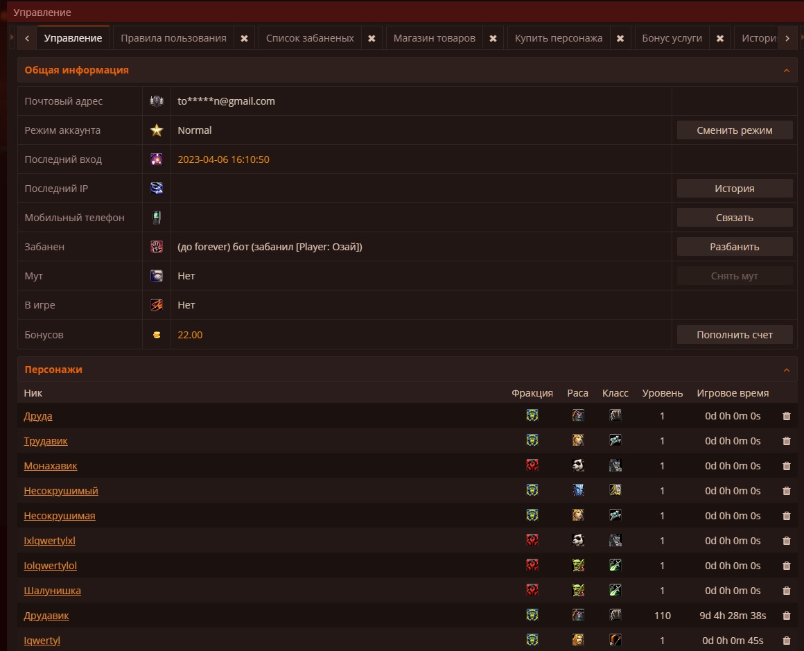 4. По неизвестной мне причине не смог зайти в игру, зайдя в личный кабинет увидел, что аккаунт опять был забанен за "БОТа"