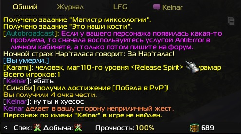 3. Оскорбление после PVP над третьим игроком вмешался своим диалогом, оскорбил меня, потом в личной переписке упомянул родственника. Оскорбление ни с того, ни с сего, PVP было против игрока Fantola, а текущий нарушитель просто был в стороне.