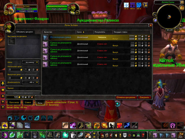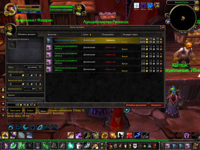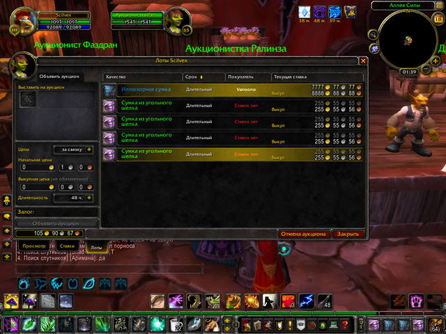 2) Сделал сумку положил на аукцион за ценник 8888 голд (выкуп) 7777 голд (первоначальная ставка)