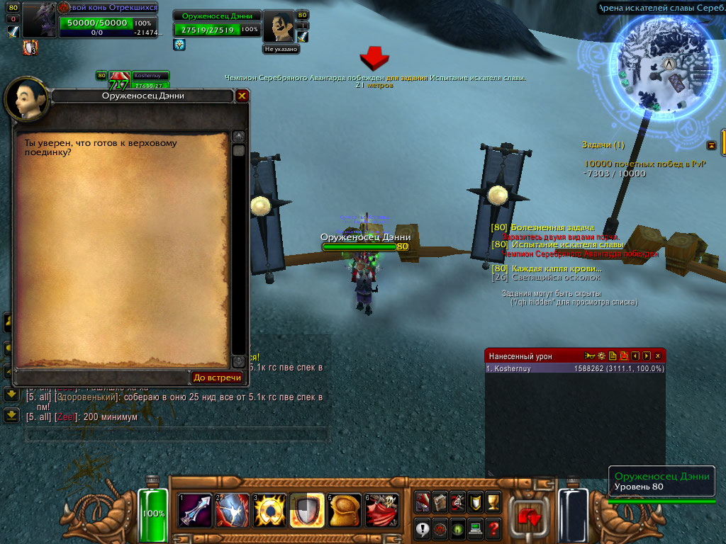 2. по квесту нужно поговорить с этим нпц http://wowway.ru/?npc=33518 и он вызывает на поединок чемпиона какого-то, но после 20 минут тыканья по нему ничего не происходит и вызвать на бой я не могу никого.