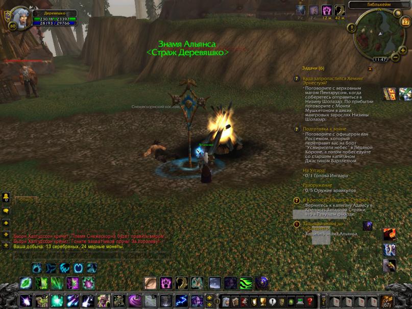 5. Путь воспроизведения бага: По прибытию на место, у костра ставим знамя, установка знамени в счет идет, не идет в зачет защита, потому как "братва" не приходит на разборки, да и знамя не должно бегать за персом.WoWScrnShot_112714_114751.jpg