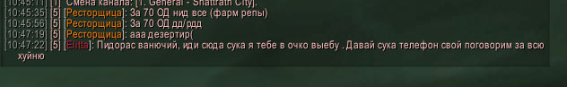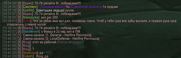 09.04.2015 в примерно с 10:00 до 11:00, в общем канале чата сервера Один игрок1 предлагает вознаграждение, тому кто поиграет с ним в прятки. Проверяя его место положение ,через команду /кто (показало что он в Даларане), я сообщаю в общий канал (all) где он находится. Дальше он говорит что это не так, и просит повторить, я тем же образом выясняю что он уже в Штормграде. Я говорю где он, он опять пишет что я не прав. Прописав /кто в 3й раз, он находился уже в Метро идущим к Стальгорну. Обвинив его в мошенничестве и назвав лгуном (в матной форме) , я решил прекратить общение с ним (все написанное было в канале all), и дальше ловить рыбу. Хотев ответить согильдийцу, я понимаю что не могу использовать любой чат, даже приватный на 4 часа. Не беда. Направившись сдавать ежедневное здание , спустя пару минут, получаю сообщение наказании в 5000 минут, причина ОА. Что это значит не имею понятия, судя по всему за свой матерные слова в общий чат расплатился. Ну ничего, "появились модераторы наконец то на нашем сервере, давно пора" подумал я, и занялся квестом дальше. Обратив внимание в чат вижу что не только мне выдали мут, Спустя пару минут вылетаю из игры. Аккаунт заблокирован. Я конечно все понимаю, но за 3 матерных слова блокировать аккаунт?