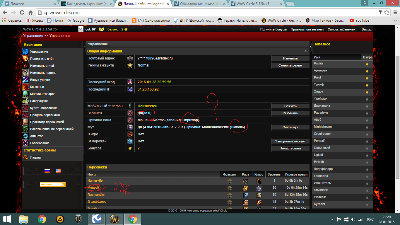 А без всего этого выше перечисленного,не видно немного выше?там все,и кто забанил и что за ники персов,и что за причина,а моя причина подавачи жалобы,Возмущение,что останется безнаказанно?рахбаньте,а то такими темпами все игрки уйдут с Циркла