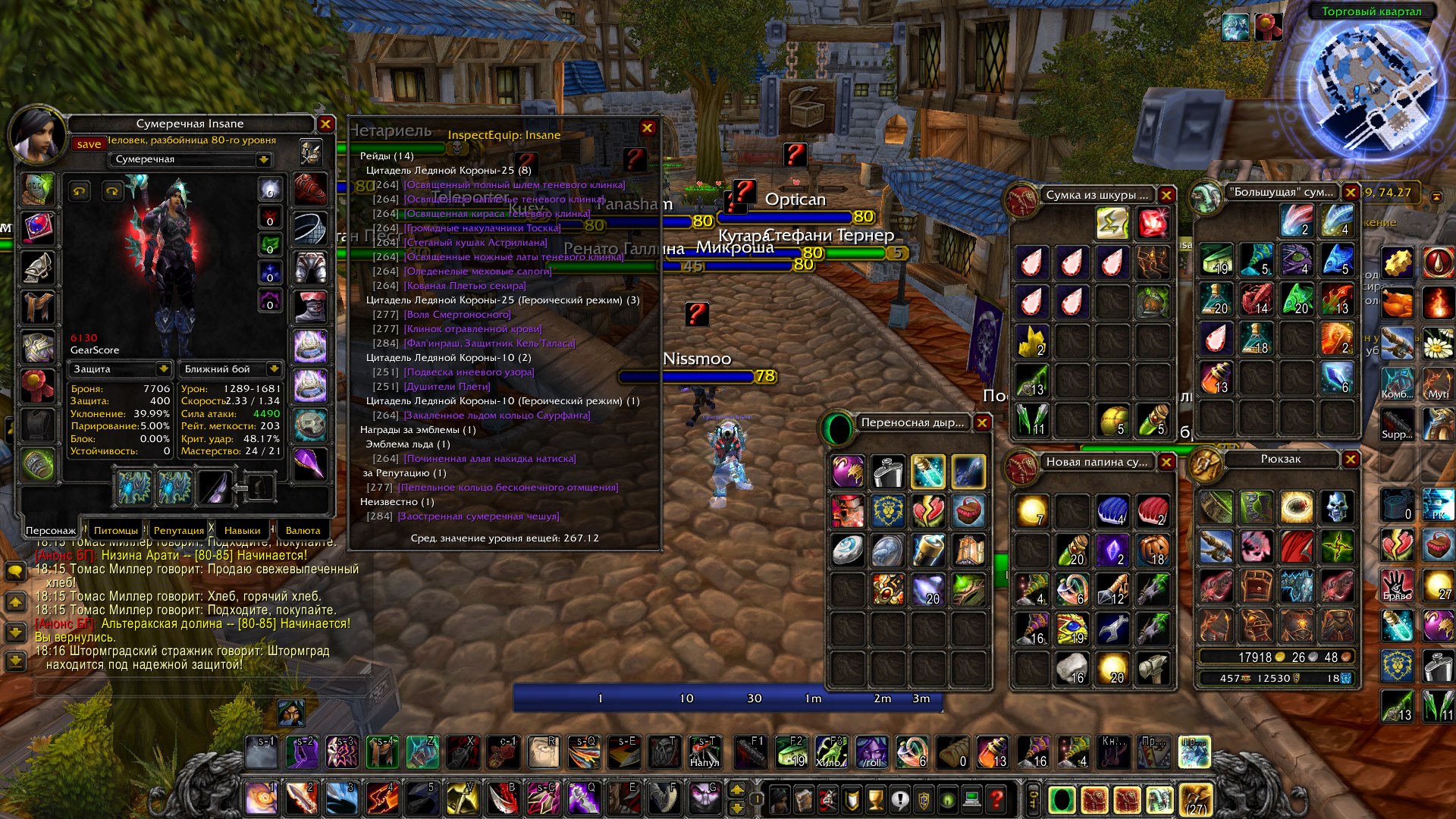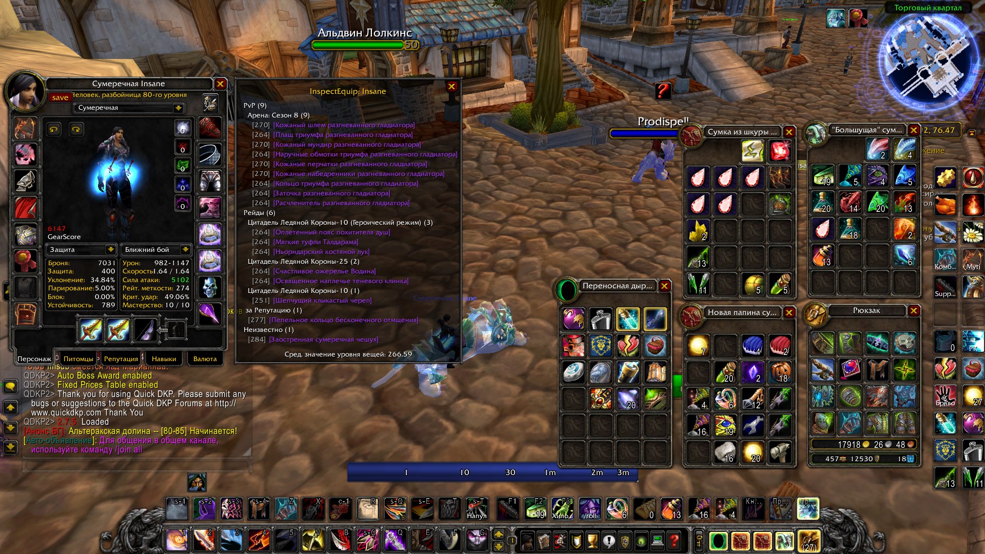 на рогуе вкачаны инжа(450) и алхим(450). на всех перчах поясах и ботах улучшения имеются)