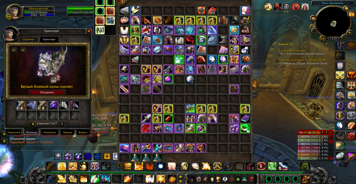 прошу минимум за персонажа, перехожу на х5, ачивы маунты спутники, много вложено, прот 2 шмотки до бисс, ретрик фул т10_2 шм череп выбор гер, нон сет норм апокалы саван колба об, шея запы кольца гер! в ивентарне шмот на холика на транс куча, и всяких полезных предметов! Выставлен на продажу, спасибо за внимание.