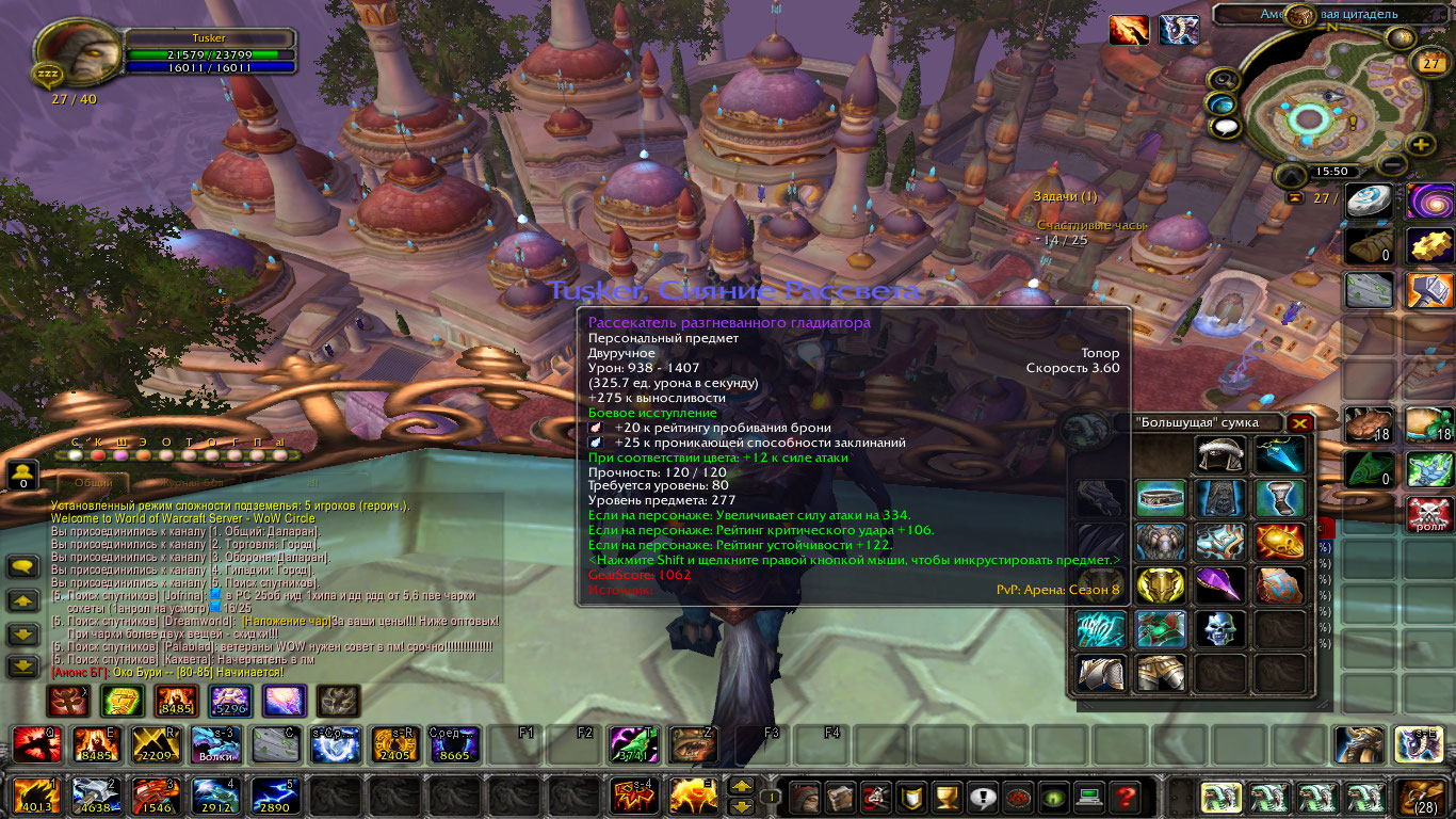 1. Tusker,Энх PvP 6.2 3/5 а8 нету только штанов и рук(по просьбе могу апнуть их),Энх PvE 6.5 ,Ршам 6к .