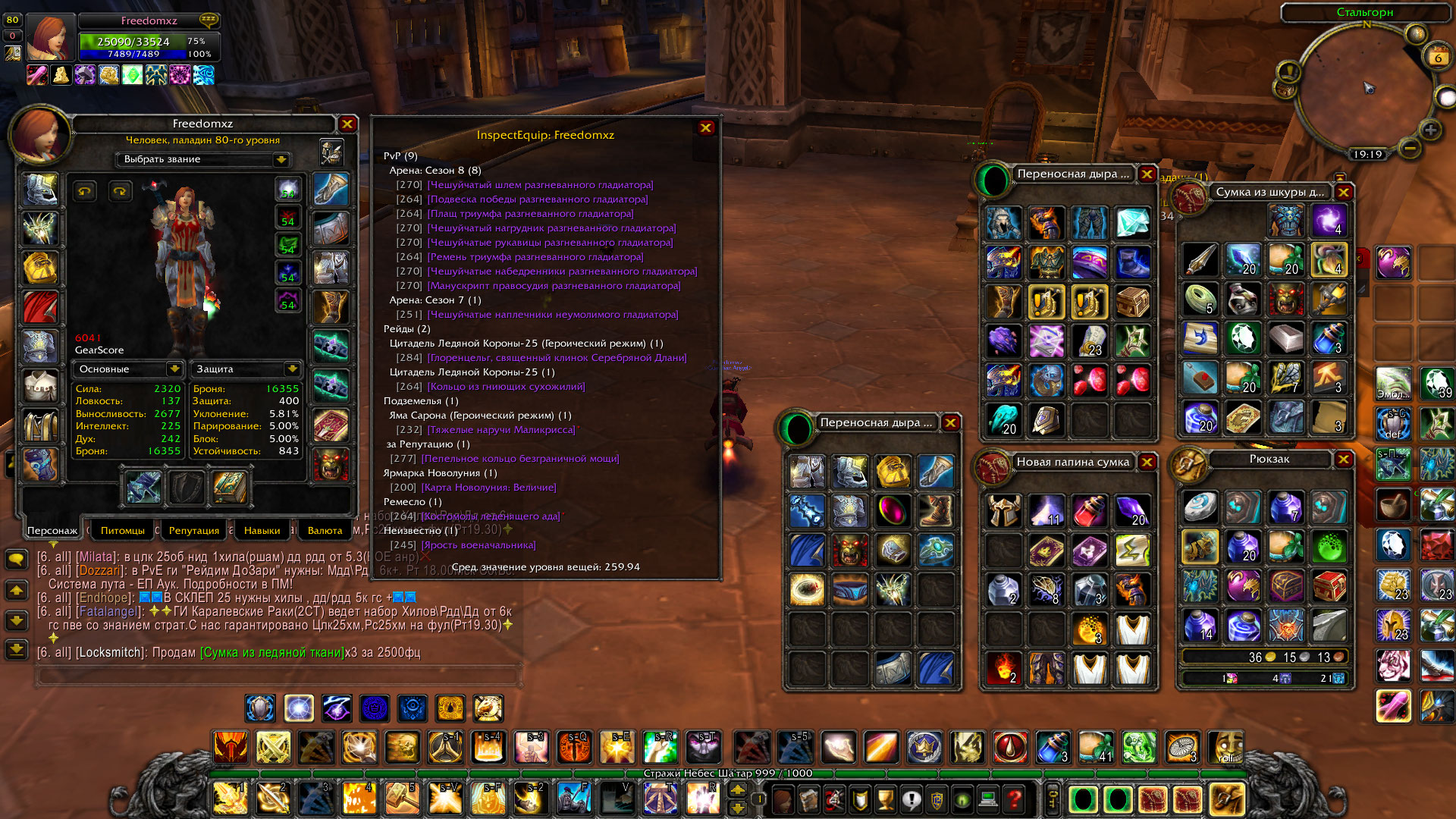 Оригинал сообщения:Паладин ориентирован на пвп, но есть и пве шмот. Пвп 4/5 a8 ретри 6к гс, пве ретри 5.7к гс. Пвп 4/5 a8 холи 6к гс(есть пвп одноручка и щит), пве холи 5.8к гс. Из достойного лута имеется - глора(гер), щит с ребрада(25гер), и другое.