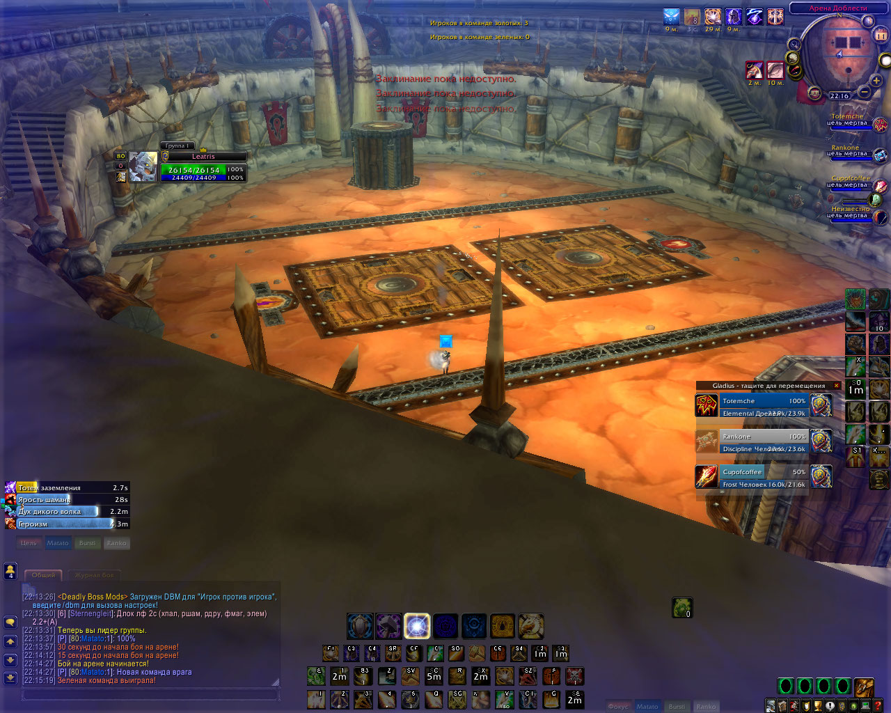 ;D а против энха то мне зачем кнок?слаер забущеный дурачек, который от меня по кд получает,что магом, что шаманом, что локом, а вы слили на 1 тиму))) сливали примерно на 2.1, ночные ривалы.вы убили нас за сек 10 после открытия, потому что мы прослакали, вот я и спросил зачем такое скринить. Вы начали лить ещё на 2060 примерно так.