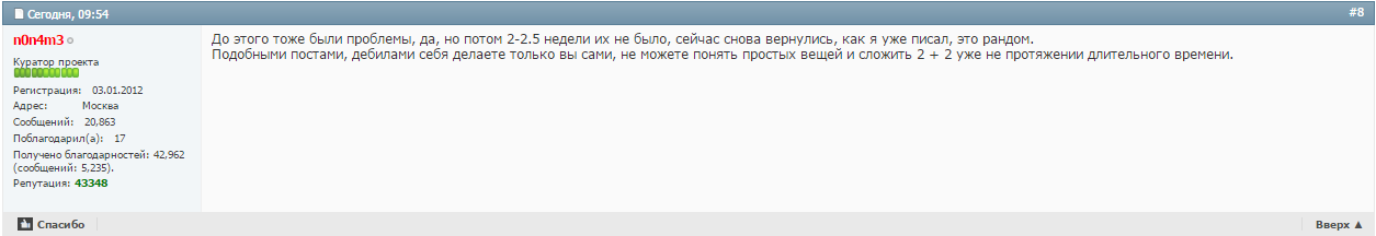 Нон, я все понимаю. Но я провел собственный тест и выявил, что проблема точно не на нашей стороне. Не помогают уже даже прокси в моей теме. от НИХ пинг до игры временами подлетает до 700. Ни в чем не виню тебя и тд. Просто займись пожалуйста этой проблемой. Ну абсурд же. Уже целую неделю длится, и каждый день всё хуже и хуже. Как вариант проблема может быть в ProManaged LLC. Их фронтенд стоит в Белизе. До него реально пинг не самый лучший. Зачем тебе AntiDDoS защита, если в OVH она стоит и так на уровне их маршрутизаторов? В твоих силах сделать куда больше, для устранения таких лагов, нежели в наших