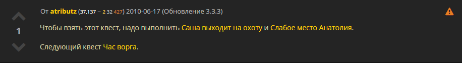 3) Квесты http://wowroad.info/?quest=12134 и http://wowroad.info/?quest=12330 доступны сразу у http://wowroad.info/?npc=26935 ,на деле они открываются после выполнения http://wowroad.info/?quest=12329Скрытый текст