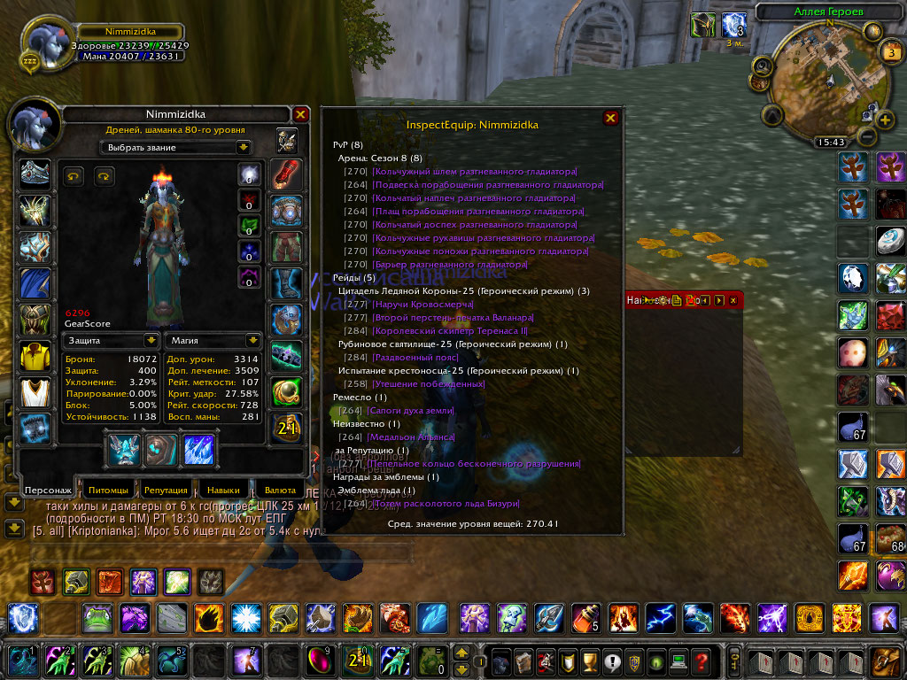 1. Дринейка. Альянс.Nimmizidka. фул а8 3 спека собраны по 2 раза все! пве элем фул и ршам по 6.5 т2 на все спеки (много транса в банке, смена расы есть)