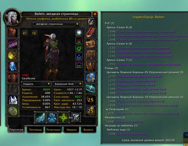 1.Bailen найтэльф\альянс PvE Комбат(6259гс) Мутик(6302гс) PvP ШД(6030гс) Мутик(5982гс) Всё по сути видно на скринах!!