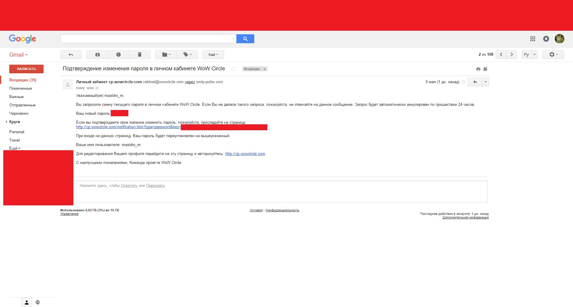 2 дня назад заметил что пропало золото у персонажа больше 2500 где-то, очевидно взломали. 5 мая сделал смену пароля через email
