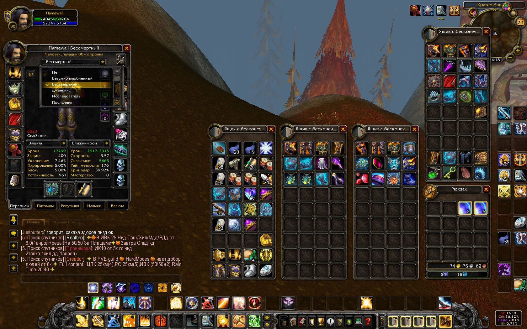 3) На пале имееться : 26 званий , 2 вида трансмута , ( пвп а4 ) . Из маунтов : Непобедимый , Призрачный тигр , 2 - Протодракона ( за сезон арены ). Также есть на пале 3 кольца за репу в ЦЛК : Танк , Хил , Дд