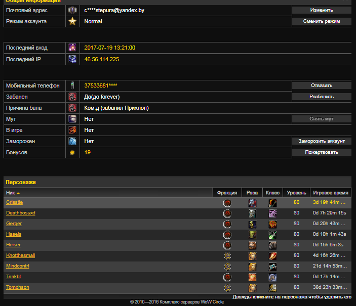 Получил бан даже не зная за что, продал персонажа через личный кабинет. На следующий день прилетел бан навсегда. Продал персонажа через личный кабинет 18.07.2017. Ник Brutalvar на следующий день прилетел бан навсегда.