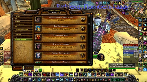 Огромное кол-во трансмута , есть все шмотки на твиноводов (с археологии , привязанные к battle.net) , 13 страниц маунтов , почти 11к ачив . Есть хранитель мудрости!!!