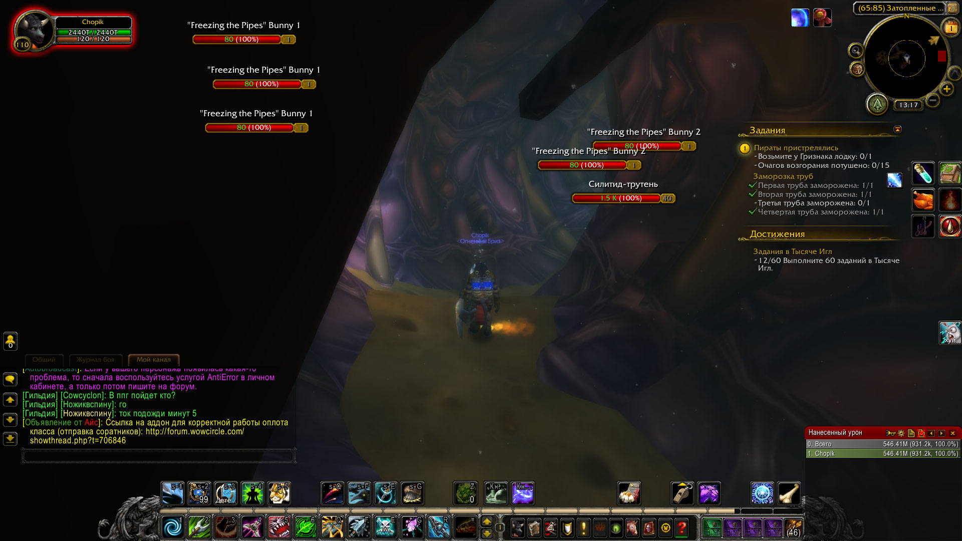 2 Невозможно выполнить критерий "Третья труба заморожена" вроде к этому привязка у нас http://www.wowhead.com/npc=47425/fre...-pipes-bunny-3 этот нпс вне карты даже петом нельзя убить. Остальные у труб плавают и критерии засчитываются. Брал в таргет через /ц