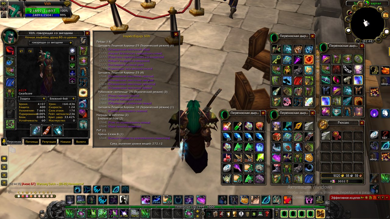 Все видно на скринах. Пару колец не мог одет из-за ювы) Куча маунтов и транса.