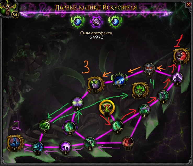 4)http://ru.wowhead.com/spell=214907 - Данный талант само собой качается самым последним, после того как вы прокачаете артефакт до 34 лвла.