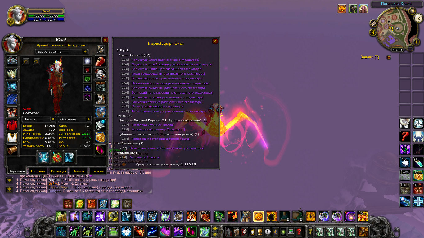 На шамане доначенная пуха на трансмут (меч), всякие ништячки, ачивочки делались.