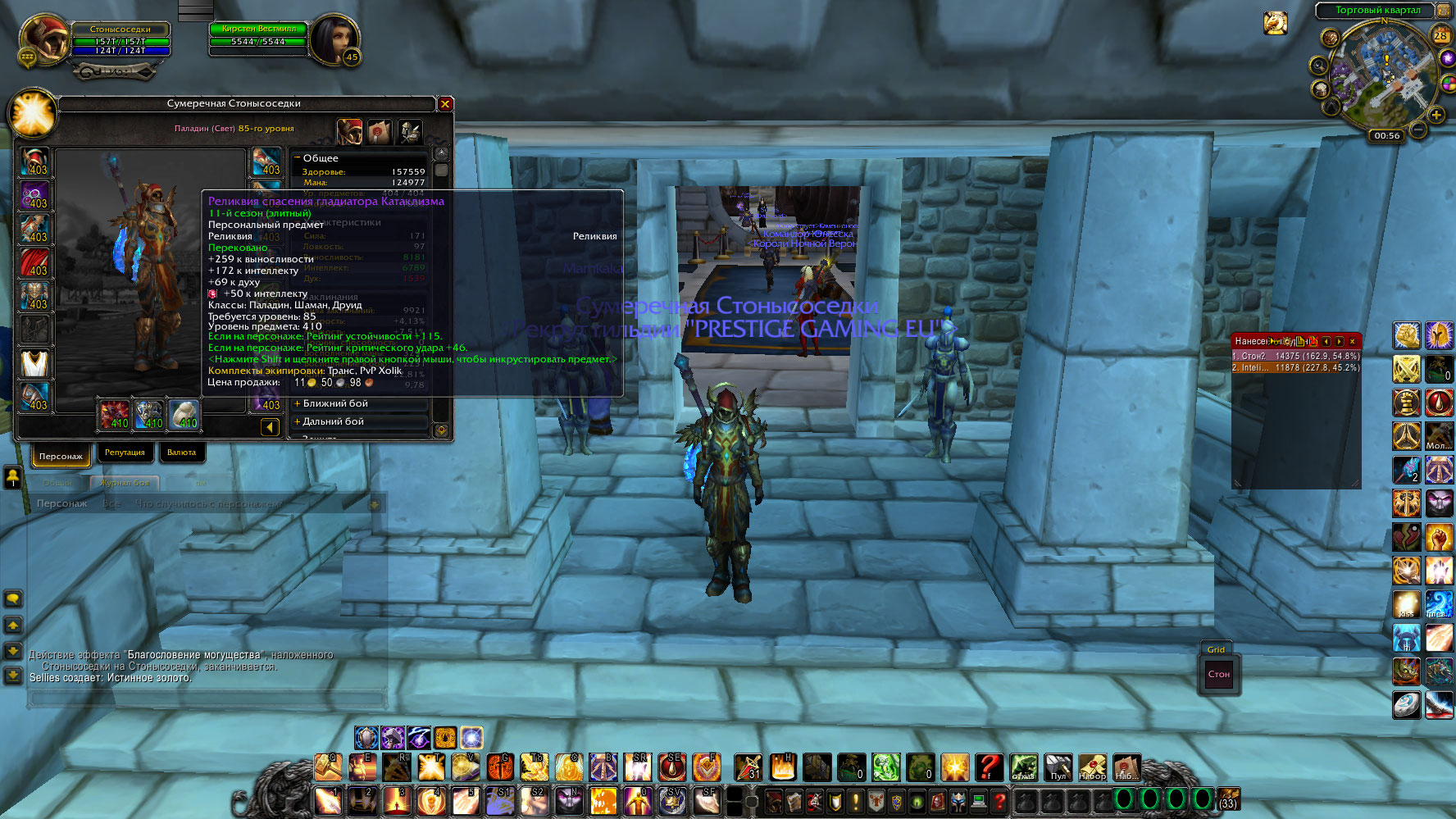 Хороший фулл пвп паладин за минималку,все эпик сокеты,т2 пуха на рпала имеется.Достаточно много ПВЕ,для 6хм годится холик,ретрик пойдет для 4хм спокойно.