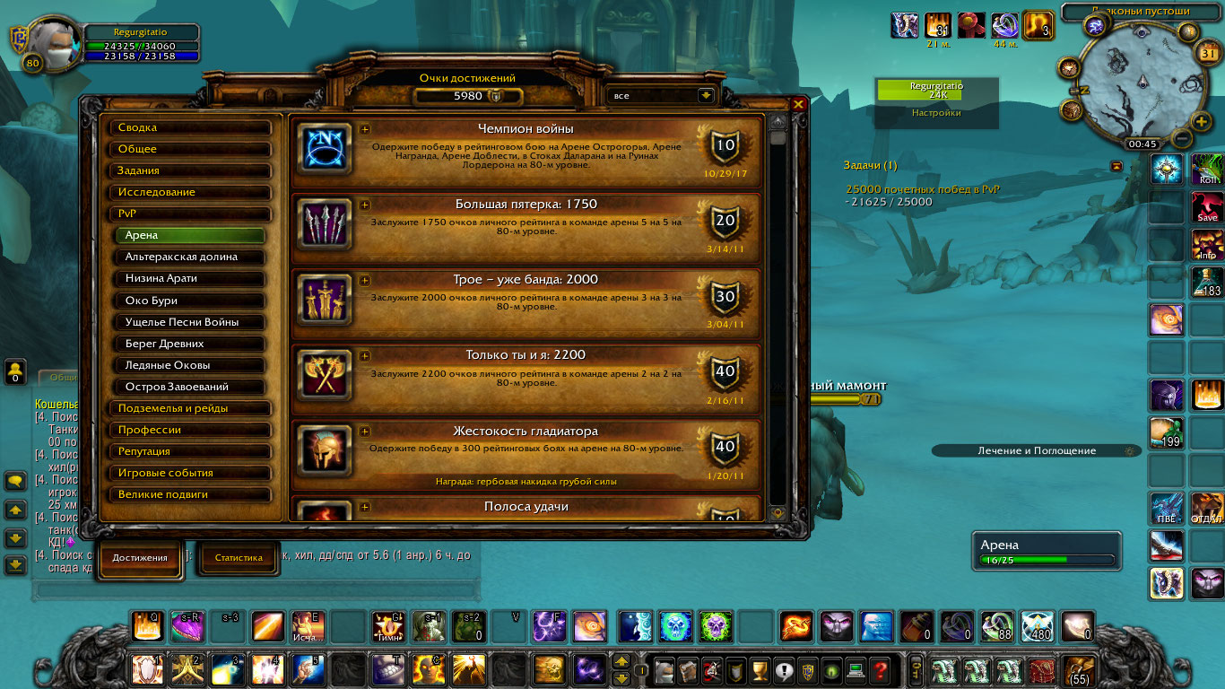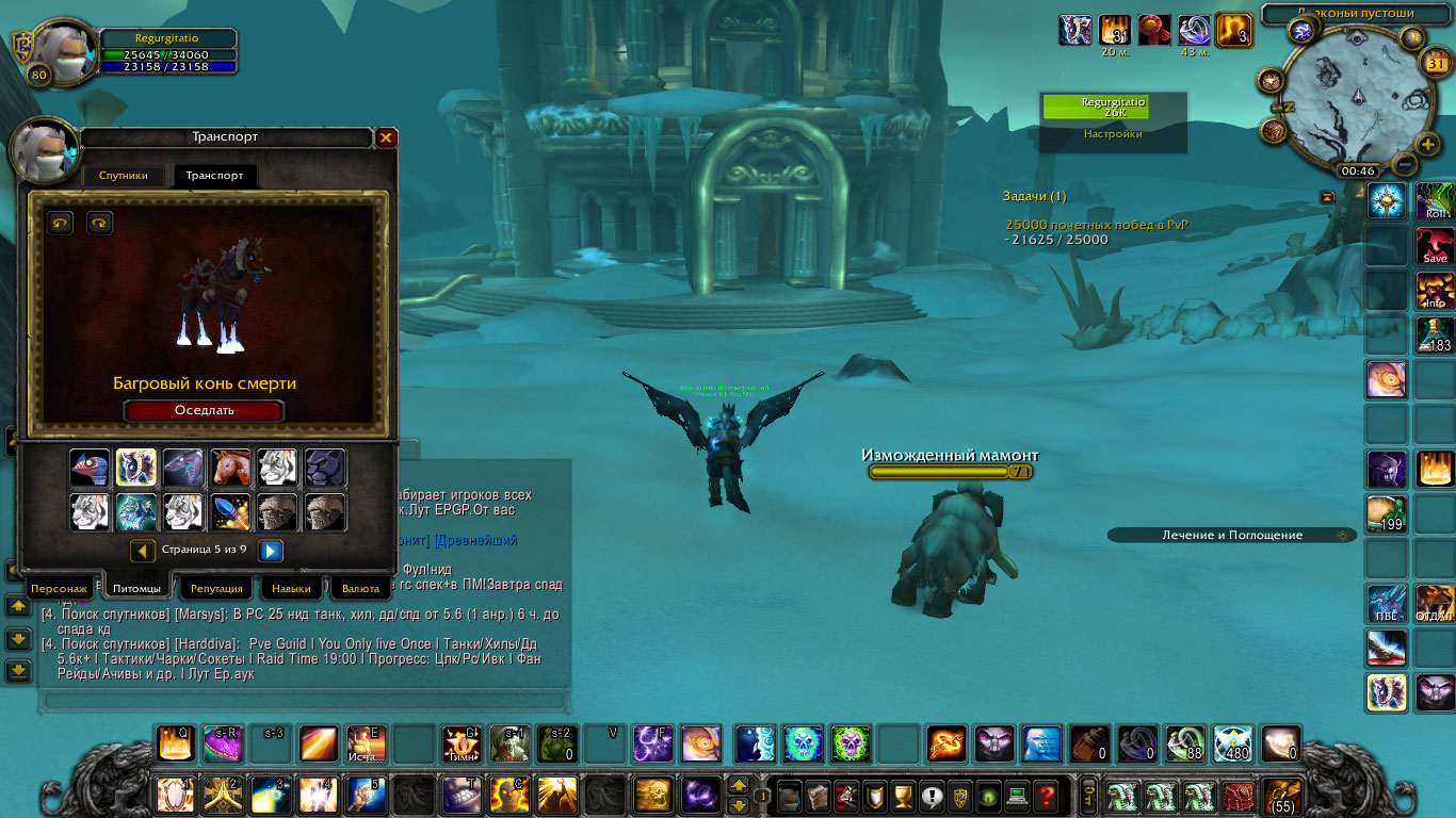 много званий(более 35), маунты(тигры,непобедимый,п отодраконы,кони,медведи,ма монты).Ачивки Лича 25хм,РС 25 хм, в PvP 2.2+ и т.д.