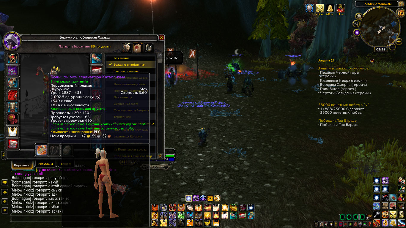 Паладин: Xxsexx , Эльфийка крови/Орда. Продаю за ненадобностью, цена 1.3к+Кмс, с продажей не спешу, отписывать в игре или на форуме. Не выставлен. Звания: Повелителя арены, Убийца глупых прислужников, Безумно влюбленный, Завоеватель.