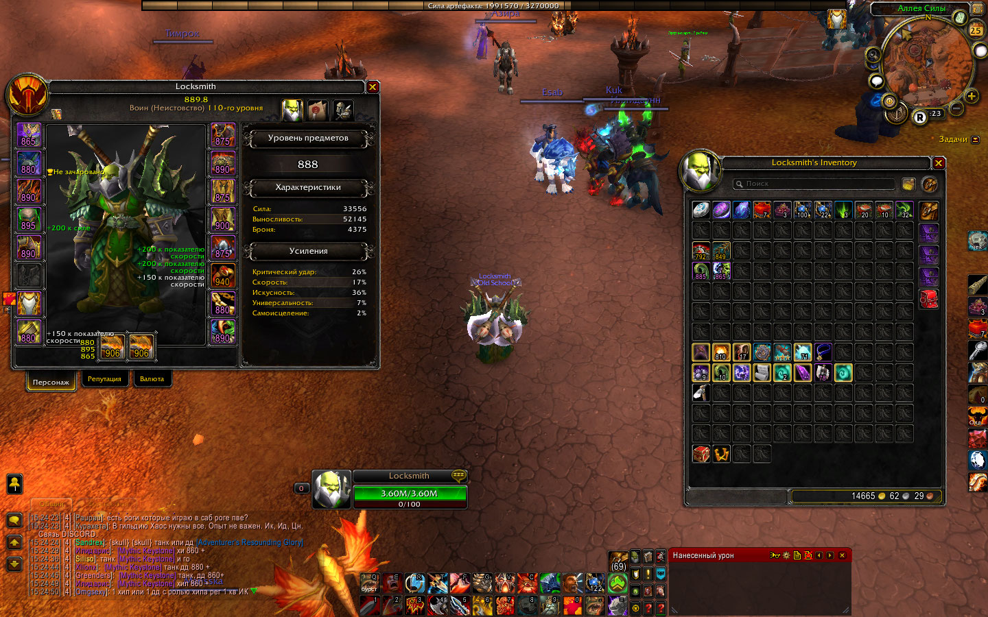 3. Неистовство - 890ilvl/46арт (Танк/Армс - не вкачаны);