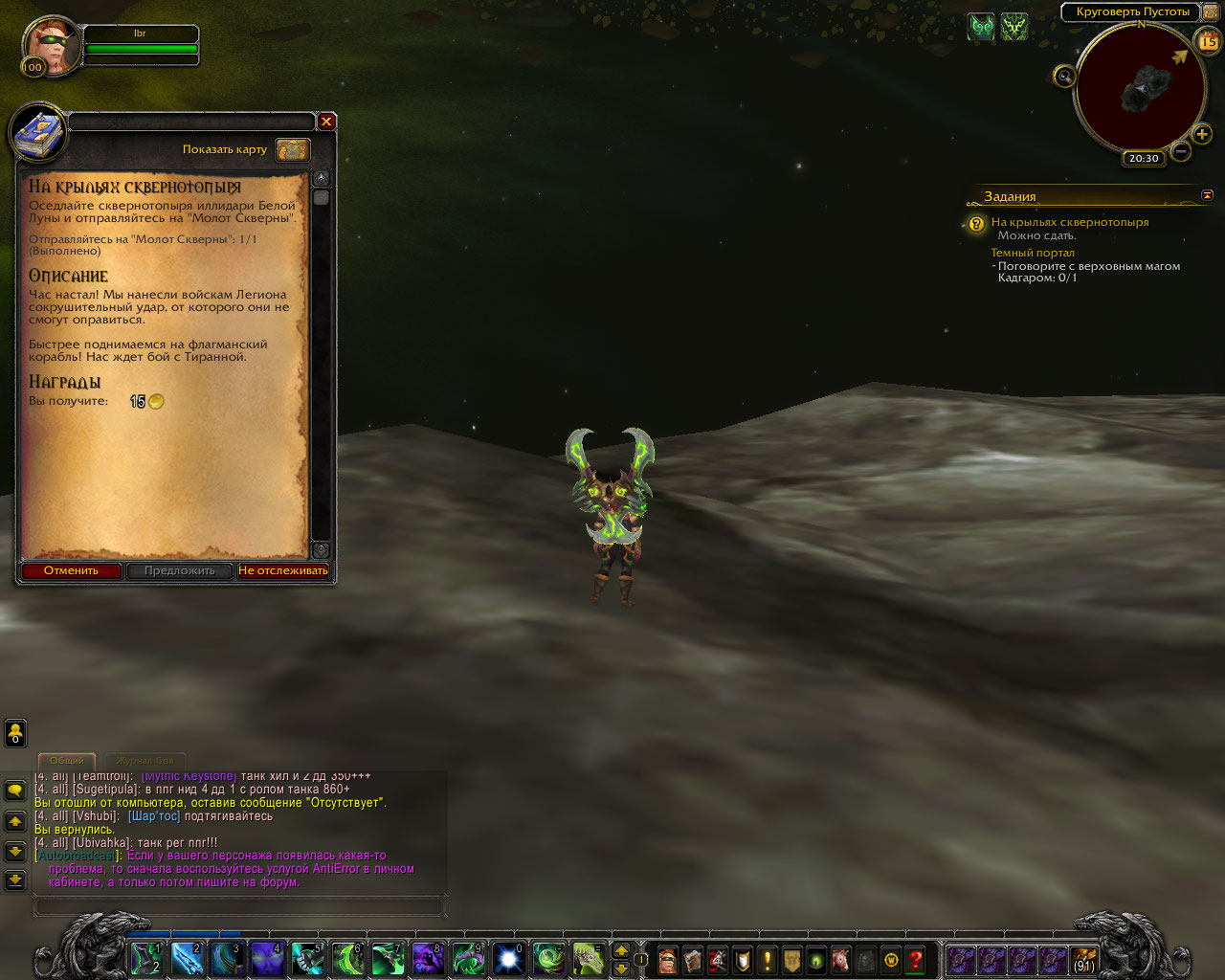 Если есть такая возможность перекиньте меня к месту сдачи кв в этот оплот или же переместите уже в Даларан, чтоб дальше развивать дх. Мой ник Ibr.