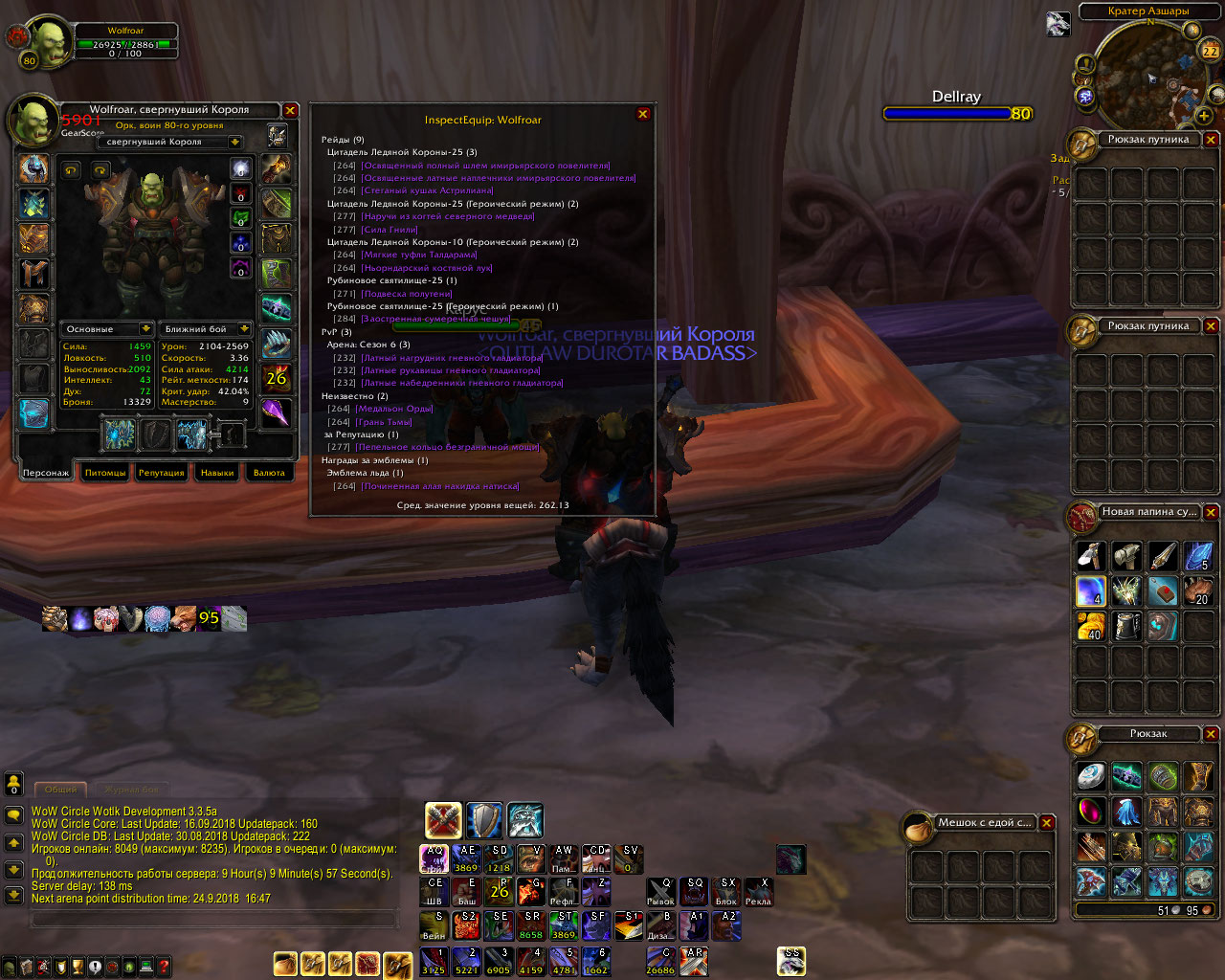 Продается уорриор 6.3 пве за минималку, кв на шм Расколотый Трон (5\50 осколков) (для любителей ачив самое то, будет вам ачив за ШыЭм), пвп шмота нет (точнее есть, но а6). ник Wolfroar, если кому нужен - берите, стоит в лк. WoWScrnShot_092218_220813.jpgWoWScrnShot_092218_220822.jpgWoWScrnShot_092218_220825.jpg