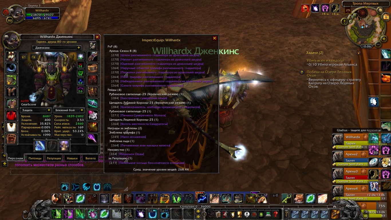 1.Willhardx,друид,орда,фул а8 ферал,клятва гер,чешка,воля гер,284 посох на рестора,все остальное на скринах