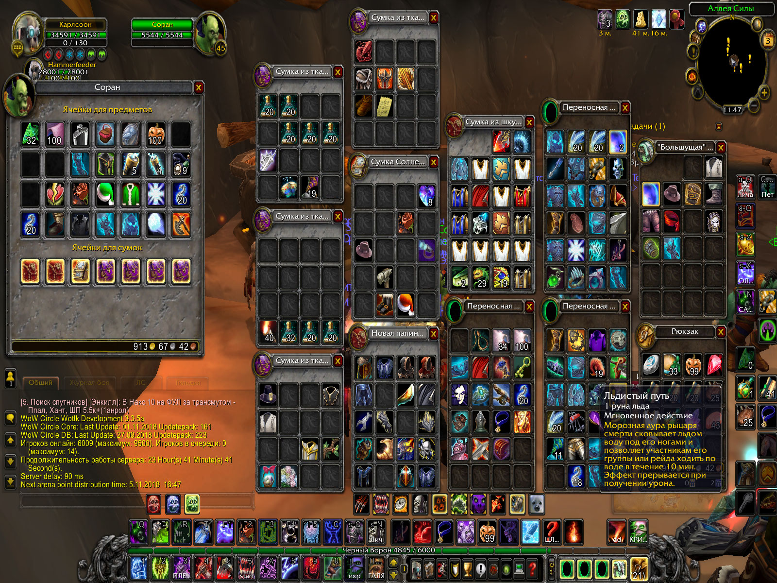 5. Очень много званий/5.5к ачивок/маунты пепел-алара/затерянный во времени протодракон/Поводья всадника без головы/и тундровый мамонт.И еще всякие разные маунты/В сумках есть приколюхи разного рода.