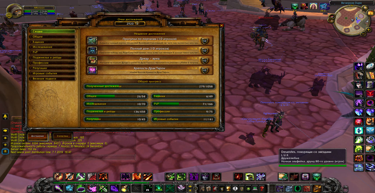 1. Ник Afflictioon лок Альянс пве афлик\дестр 6.5 пвп 6.1