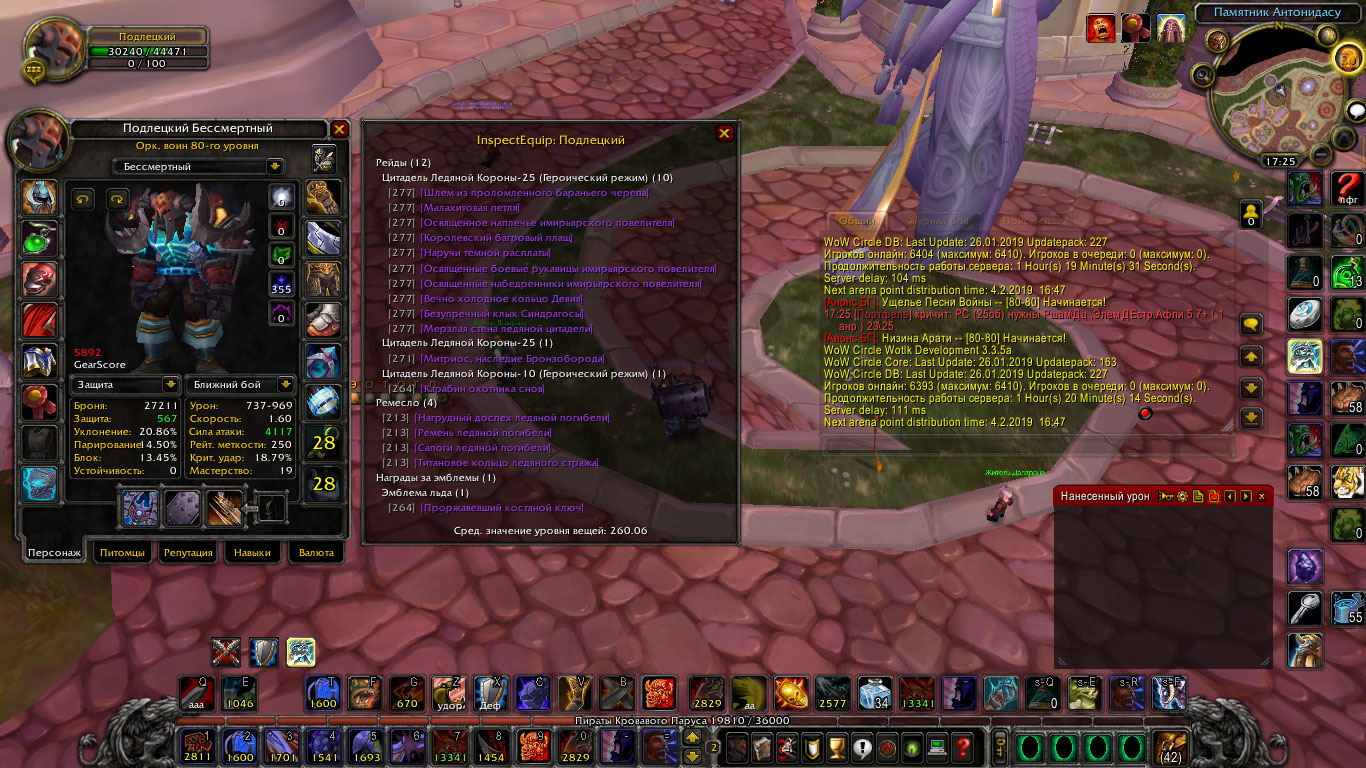 1. Подлецкий (попрошу сменить потом никнейм), воин, орда, все на фото, почти 85 дней онлайна.