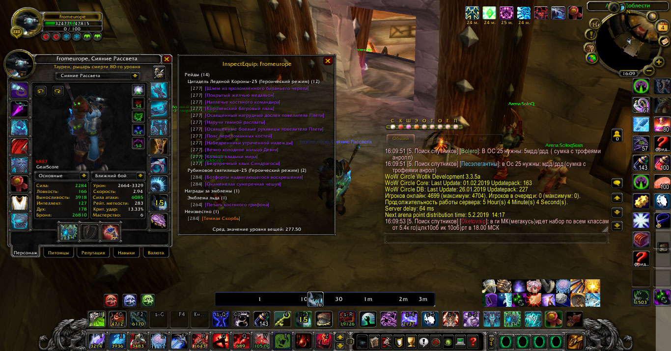 Fromeurope дк корова, бдк танк 6887 с шм , есть брин , трини чешка клык , есть ключ, пве адк 6800 до биса осталось 2 токена + саван , вариация тринь чешка +выбор , так же есть воля , обычный зов валяется , наличие пвп 6400+ , смесь шмота а6-а8 , 1,5к апа , из маунтов непобедимый.