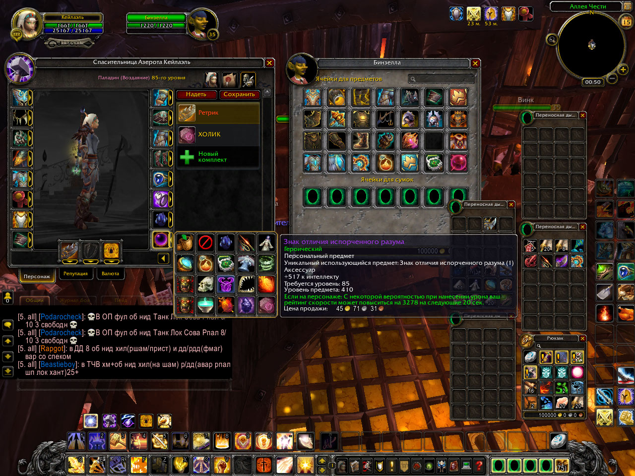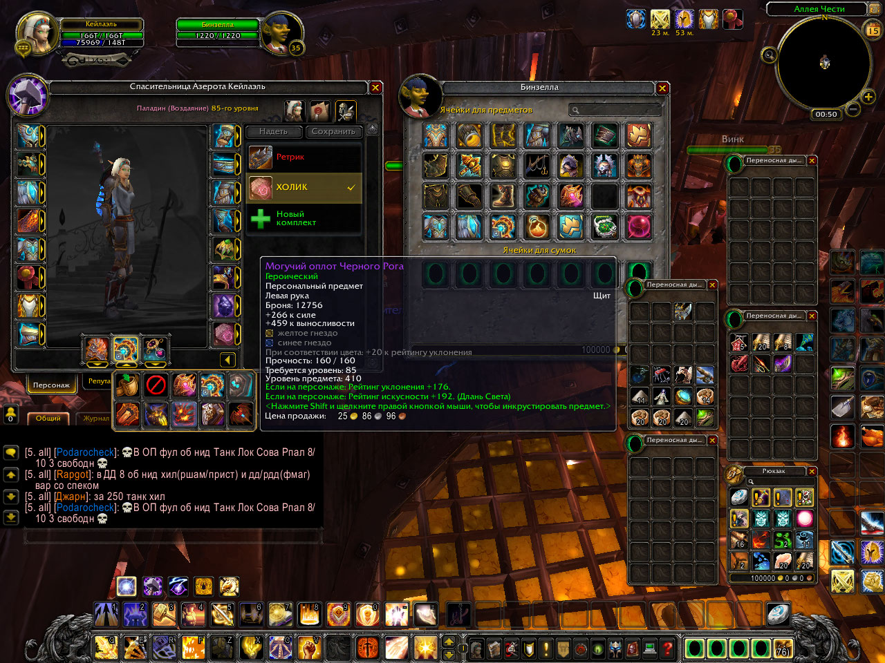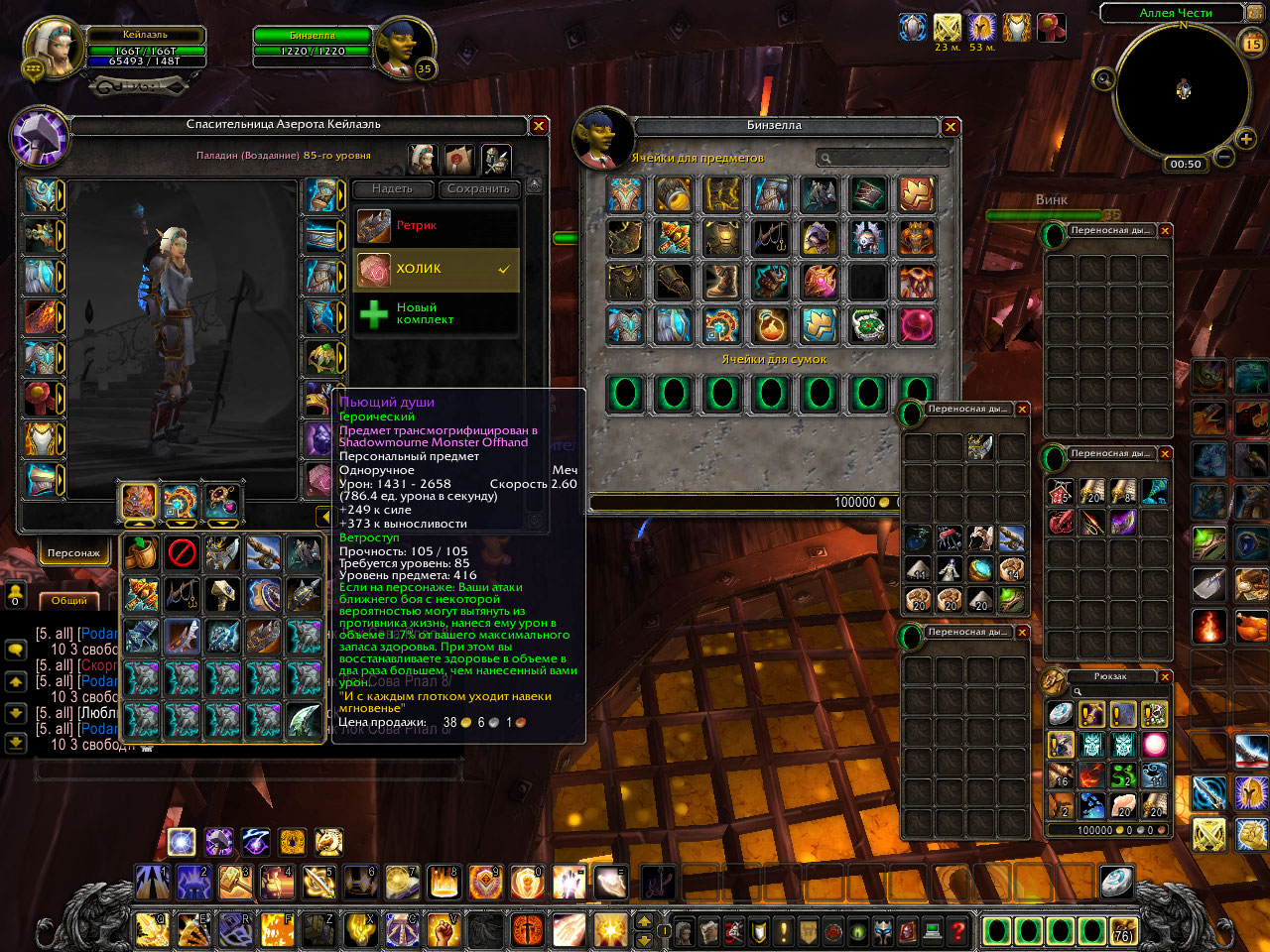 1. Кейлаэль. Орда, Эльфийка крови. ПВЕ бис ретрик 408, бис холик 408, танку нужно сет доодеть(бисс оффсет).