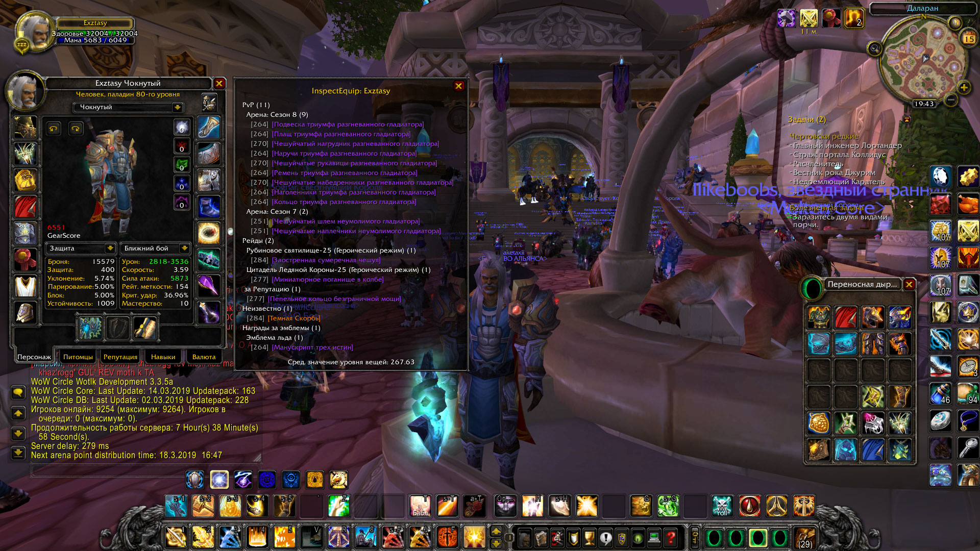 1. Имя персонажа - Exztasy, класс - паладин, фракция - альянс, ретри ПВЕ (6867 гс), ретри ПВП (6551 гс), прото ПВЕ (6464 гс), холи ПВЕ (6028 гс)