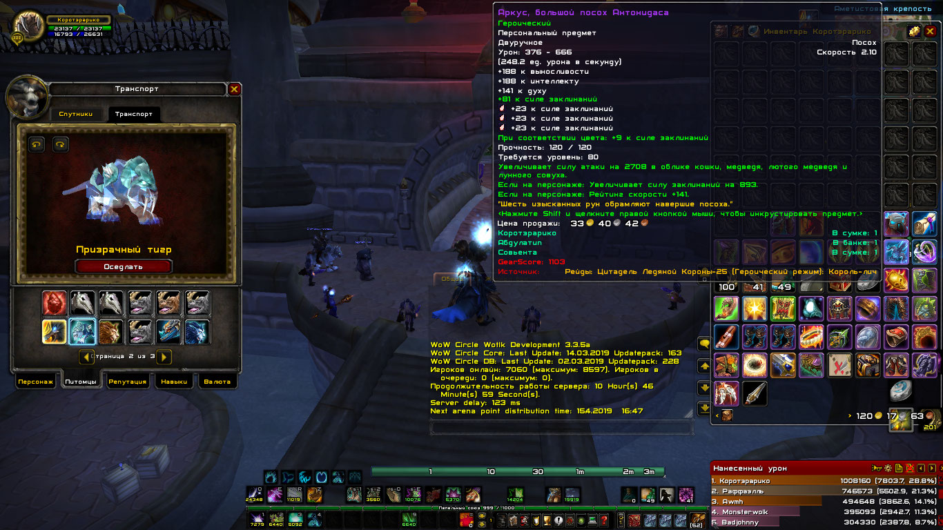 Коротэрарико, бис пве сова,есть шмот на хила,много трансмута