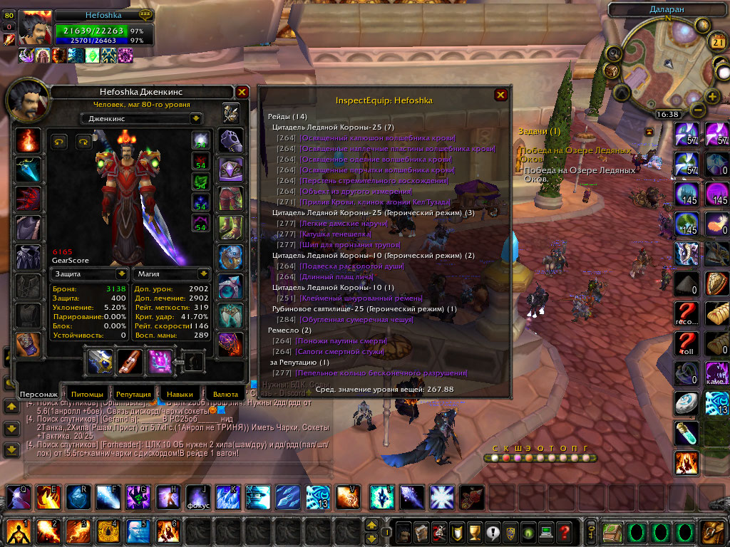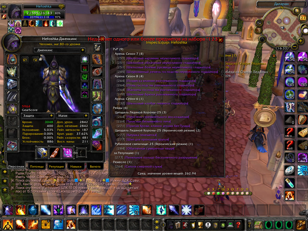 Ник Hefoshka Альянс. ПВЕ Фаер 6.2. ПВЕ Аркан 6.1. ПВП 6к(есть инеска, забыл вставить ее, на скрине со всем шмотом, видно ее). Есть много крутых плюшек: превращалка, топовый трансмут, интересные маунты, Инженерка/Алхимия прокачена на фулл. Маг подойдет для рейда любой сложности. Маг ждет вас в ЛК за 1000+% (В ЛК МАГ стоит в АРКАНЕ!!!!!) По поводу всего писать мне в ЛС или снизу темы. Ловим скрины..