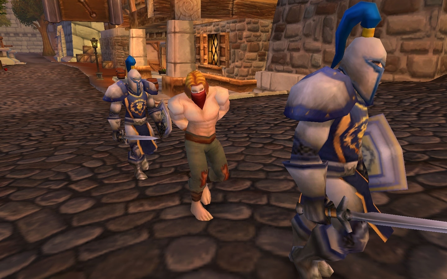 Появляется на причале в сопровождении двух стражников, которые ведут узника в тюрьму Штормграда.
