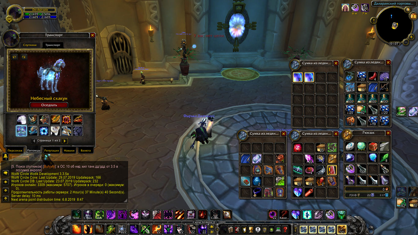 5. Предбис лок ПВЕ,фул ПВП спек с а7 и а8,отдаю в хорошие руки.У персонажа есть много бисовых шмоток,а главное есть обе бис трини и обе бис пухи,есть разные трансмуты,ПВП спек,донатный маунт "Небесный скакун" , донатный трансмут (очень редкий,на скрине видно),звания с ачивок,наличие очек арены 1500+.