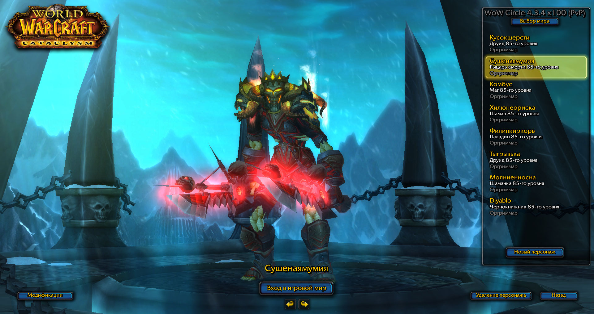 Кусокшерсти(друд) , Сушенаямумия(рыцарь смерти), Комбус(маг), Хилюнеориска(шаман), Филипкиркорв(паладин), Тыгрызька(друид), Молниенносна(шаман), Diyablo(чернокнижник).