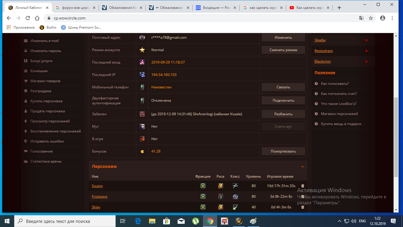Svutoy,Frostxays,Sklay,Xdrulli,причина бана слив арены,этот бан был выдан мне ошибочно Vusale, так как я не играл с 29.09.2019 на персонажах даже тимы нету .мне снимут бан ?