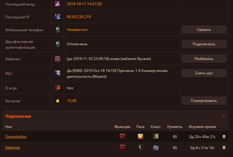 я играл вышел из игры захожу на след день висит бан непонимаю вобще за что он был мне поставлен и вот такая ситуация (до 2019-11-10 22:09:18) komm (забанил Vusale) время бана уже истекло как 12ч назад а его досих пор не сняли что такое вобще не понимаю d5552fde7c5f33e1a538ed123064a8f7.png синимите бан ведь уже время прошло