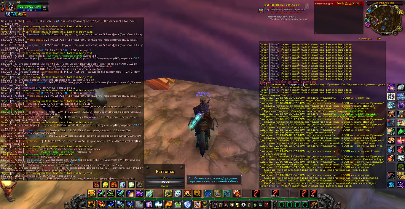 Дата мута: 2019-08-28 09:36AM, продолжительность: 10000 мин, причина: Сообщения о покупке/продаже персонажа через личный кабинет, выдал: Женщинатьмы