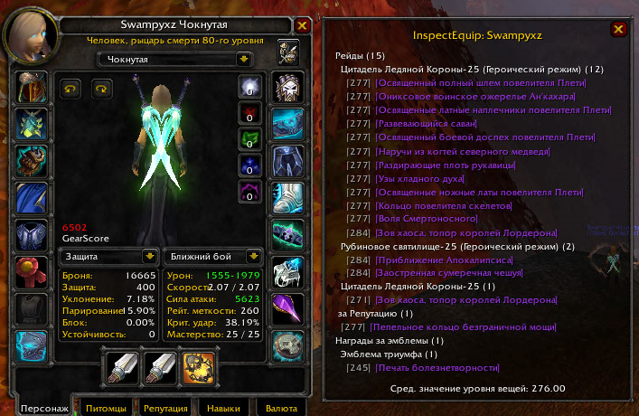Дк Swampyxz хуман, альянс. Продаю в связи с сменой класса. Отличный дк как для пве так и для пвп контента. Имеется 2 приговора, шм, брин гер и весь необходимый пве абуз. Безымянный3.pngБезымянный1.pngБезымянный.png