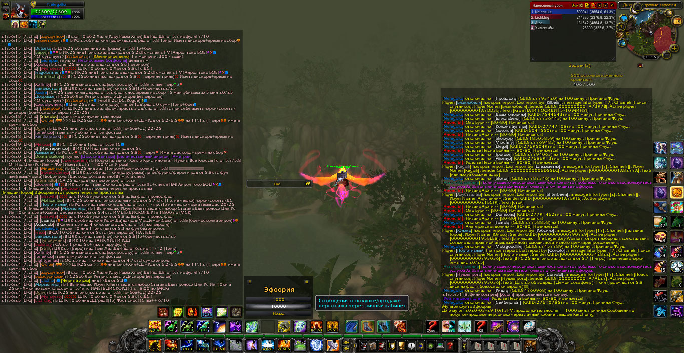 Дата мута: 2020-03-29 10:13PM, продолжительность: 1000 мин, причина: Сообщения о покупке/продаже персонажа через личный кабинет, выдал: Ketchomg