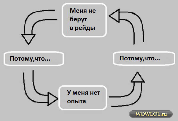 В теме многократно говорится, что если у человека нет знания тактик (практических), то не стоит его брать в рейды. А как я могу опробовать и отточить свои теоретические знания тактик, на практике, если меня не хотят брать в норм. рейды? Собирать pug я не могу, так как нет практики тактик, да и водить рейды это не то что умение, это дар. Идти в случайном рейде тоже ни чего хорошее, обычно дальше второго босса рейд не уходит.