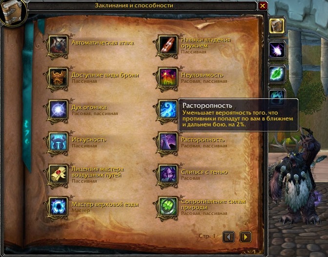 Ты бьешь найт эльфа. У них расовая уменьшает вероятность попадания по ним на 2% (тут почему-то пишет 1%)